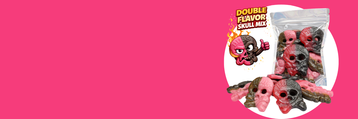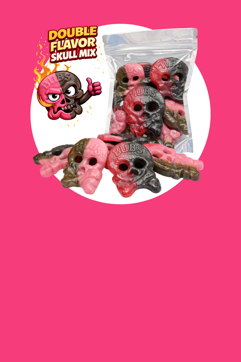 Bubs Raspberry Liquorice Skulls 250 gram